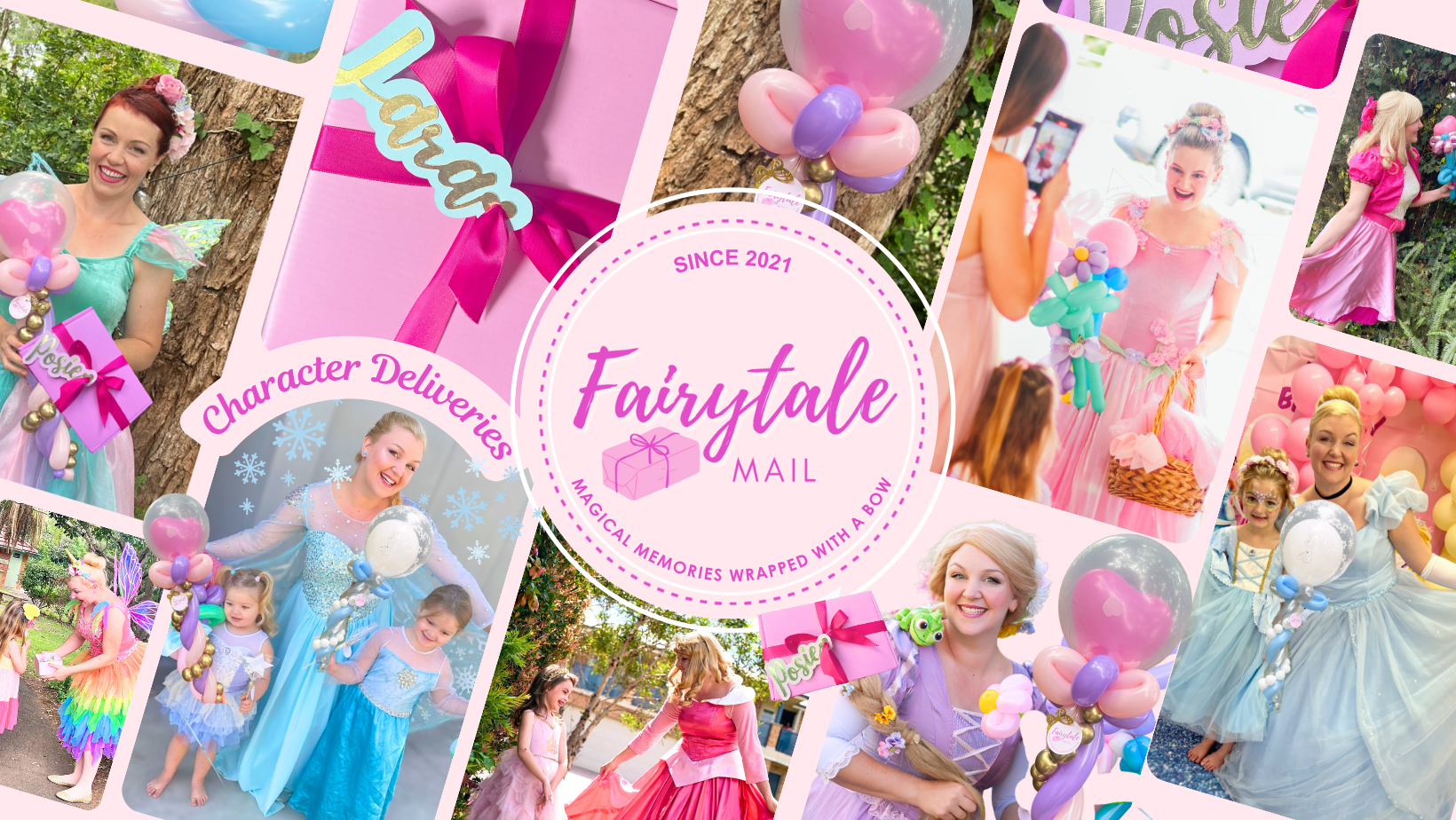 Choose your favourite fairytale character to deliver a balloon bouquet + gorgeous gift to help celebrate!